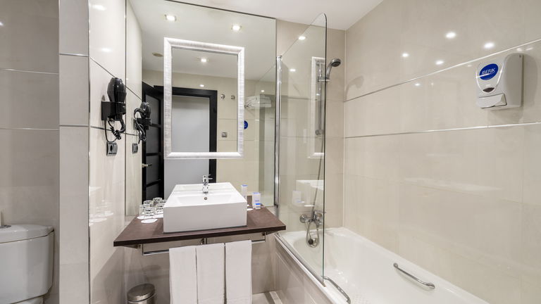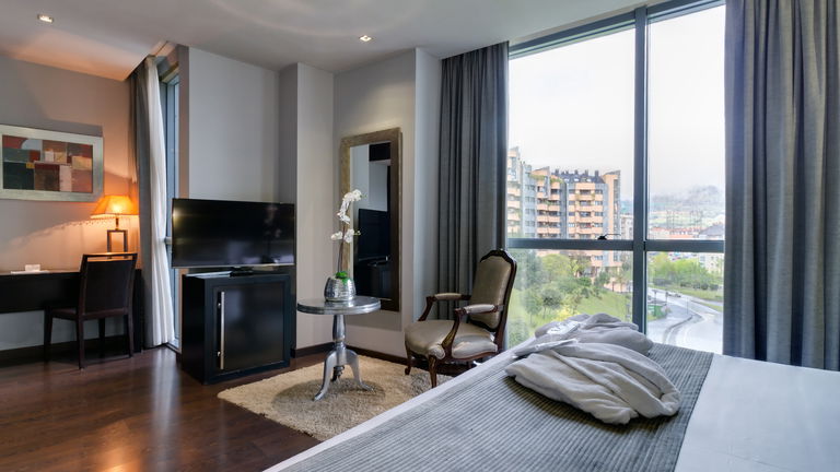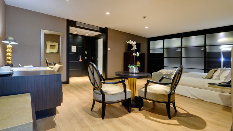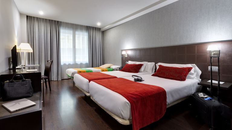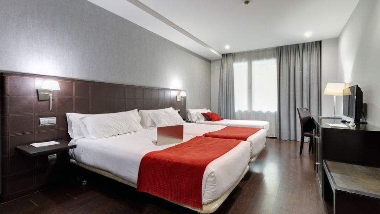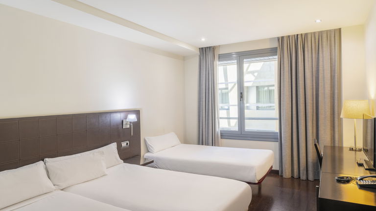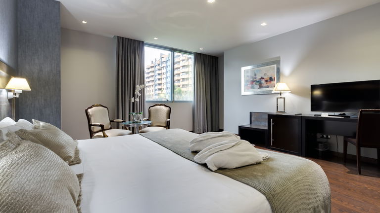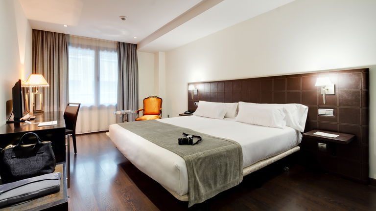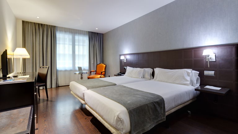 Puede disponer de dos camas juntas o bien una cama de matrimonio con un completo equipamiento que incluye : minibar, teléfono, secador de pelo, amenities, caja de seguridad electrónica, TV pantalla plana, Wifi gratuito y climatizador con control individual, entre otros servicios.