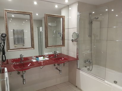 El baño cuenta con bañera hidromasaje, ducha, espejo de aumento, albornoz, amenities superiores o toallero calefactor, entre otros.